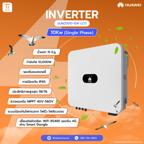 Huawei Inverter 10kW 1Phase On-Grid / Hybrid รุ่น SUN2000-10K-LC0 อินเวอร์เตอร์คุณภาพสูงสำหรับระบบโซลาร์เซลล์บ้านพักอาศัยและธุรกิจขนาดเล็ก ให้พลังงานเต็มประสิทธิภาพ เสถียร ปลอดภัย และบริหารจัดการง่ายผ่านแอป พร้อมการรับประกันยาวนาน 10 ปี (ซ่อมศูนย์ไทย)