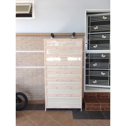 ฝาบนและพื้นชั้นเป็นกระจกนิรภัย รับน้ำหนักได้ประมาณ 15–20 กก./ชั้น