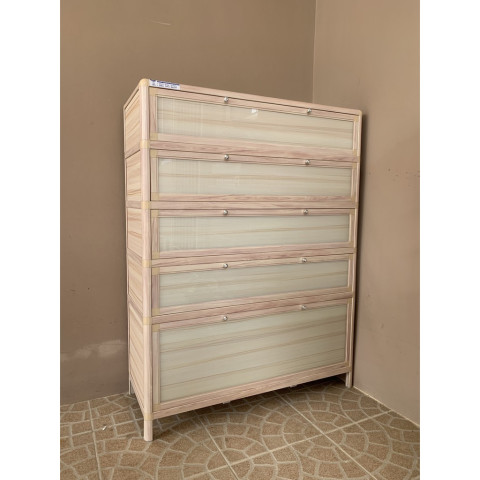 ⭐️PREMIUM⭐️ ตู้รองเท้าอลูมิเนียมกันน้ำ กันปลวก (สีลายไม้สว่าง) บานกระจกกึ่งนิรภัย