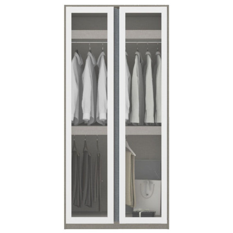 SB Design Square ตู้เสื้อผ้าแขวนบน-ล่าง OP-B ขนาด 100 ซม. รุ่น Blox จากแบรนด์ KONCEP ดีไซน์โมเดิร์นโทน ขาวลายผ้า ผสาน หน้าบานกระจกใส ให้ห้องดูโปร่ง สะอาดตา พร้อมฟังก์ชันจัดเก็บแบบ “ครบและพอดี” เหมาะทั้งคอนโดและบ้านที่ต้องการตู้เสื้อผ้าดูเรียบหรู ใช้งานจริงจังในทุกวัน