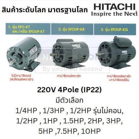 มอเตอร์ญี่ปุ่นแท้ HITACHI Japan 220V ไฟบ้าน IP22 รอบเครื่อง 1450 รอบ/นาที (ตัวเลือก 1HP) ส่งด่วน
