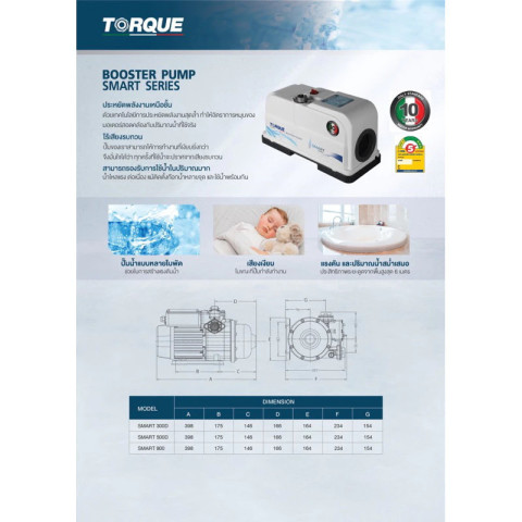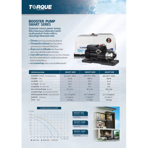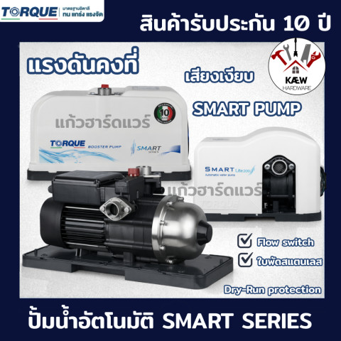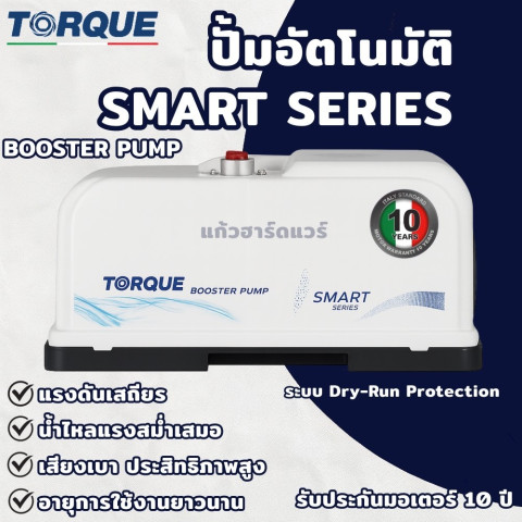 TORQUE Booster Pump ปั้มน้ำอัตโนมัติ แรงดันคงที่ Smart Series ตัวช่วยเพิ่มแรงดันน้ำภายในบ้านให้ไหลสม่ำเสมอ ใช้งานสะดวกด้วยระบบทำงานอัตโนมัติ เหมาะสำหรับบ้านพักอาศัย โดยเฉพาะบ้าน 1–2 ชั้นหรือจุดใช้น้ำหลายจุด พร้อมระบบป้องกันมอเตอร์และระบบตัดน้ำแห้ง ช่วยให้ใช้งานได้มั่นใจยิ่งขึ้น
