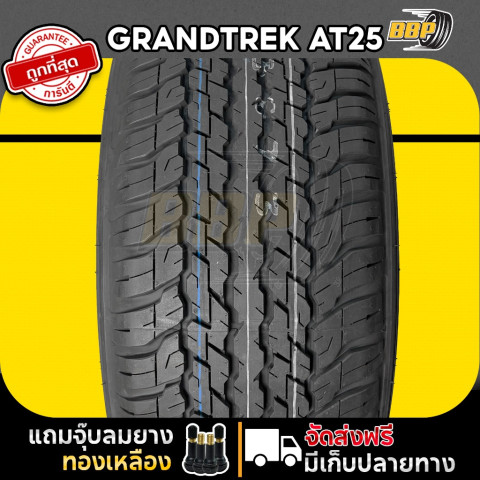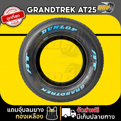 DUNLOP 265/60R18 ยางรถยนต์ รุ่น Grandtrek AT25 แก้มขาว ปี 25 ยาง All Terrain (AT) สำหรับรถกระบะ / SUV / PPV ที่ต้องการความอเนกประสงค์ ใช้งานดีทั้งทางเรียบและทางลุย ให้ฟีลลิ่งนุ่มเงียบ เกาะถนนมั่นใจ และทนทานคุ้มค่า พร้อมฟรีจุ๊บลมยาง และประกันคุณภาพทุกเส้น เหมาะสำหรับผู้ที่มองหายางมาตรฐานติดรถ (OEM) ที่ไว้ใจได้