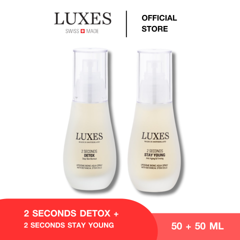 [DUO SET] LUXES 2 SECONDS DETOX SPRAY 50ml & 2 SECONDS STAY YOUNG SPRAY 50ml ชุดสเปรย์ดูแลผิวแบบเร่งด่วนที่ตอบโจทย์ไลฟ์สไตล์ยุคใหม่ เพียงไม่กี่วินาทีก็พร้อมรีเฟรชผิว ลดความหมองล้า และเติมความสดชื่นให้ผิวดูมีชีวิตชีวา เหมาะสำหรับใช้ระหว่างวัน หลังล้างหน้า หลังออกกำลังกาย หรือก่อนแต่งหน้า/เติมเมคอัพ ให้ผิวดูสมูทและสบายผิวมากขึ้นในทุกสถานการณ์
