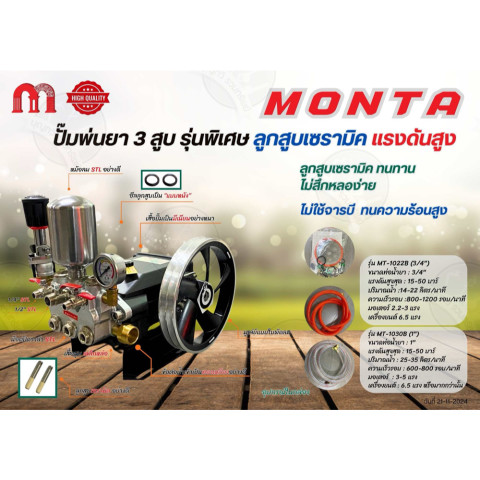 เหมาะสำหรับผู้ที่ต้องการปั๊มพ่นยาที่ แรง ทน พ่นได้นิ่ง และรองรับงานเกษตรที่ต้องการความต่อเนื่อง เลือก monta รุ่นพิเศษนี้เพื่อประสิทธิภาพที่มั่นใจได้ในทุกวันทำงาน
