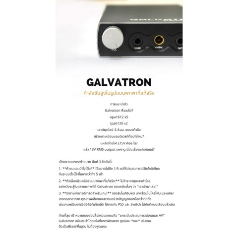 [ประกันศูนย์ไทย] VE Galvatron แอมป์หูฟังพกพากำลังสูงที่ยกระดับการฟังเพลง ดูหนัง และเล่นเกมให้ “ใกล้เคียงระบบเดสก์ท็อปขนาดใหญ่” ในขนาดพกพาที่แท้จริง เหมาะทั้งสายออดิโอและเกมเมอร์/สตรีมเมอร์ที่ต้องการพลังขับจัดจ้าน เวทีเสียงใหญ่ รายละเอียดชัด และโทนเสียงเป็นกลางแต่อบอุ่นแบบอะนาล็อก พร้อมพอร์ตการเชื่อมต่อครบเครื่อง ใช้งานง่ายแบบเสียบแล้วเล่น