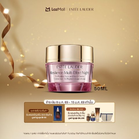 Estee Lauder Resilience Multi-Effect Night Tri-Pepticle Face and Neck Creme 50ml ครีมบำรุงกลางคืนเนื้อเข้มข้นสำหรับผิวหน้าและลำคอ ที่ช่วยฟื้นคืนความดูยกกระชับและอ่อนเยาว์ขณะหลับ ผิวรู้สึกแน่น เฟิร์ม และดูมีความยืดหยุ่นมากขึ้น พร้อมลดเลือนการมองเห็นของเส้นริ้วและรอยย่น เติมความเปล่งปลั่งให้ผิวกลับมาสดใส ตื่นมาพร้อมลุคผิวสุขภาพดีอย่างเป็นธรรมชาติ