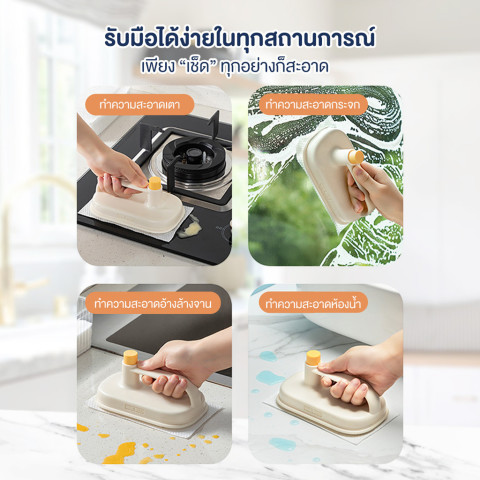 ใช้ได้ทั้งเปียกและแห้ง ผ้านุ่มเมื่อโดนน้ำ เช็ดคราบมัน คราบอาหาร หรือฝุ่นผงได้ง่าย ไม่เปลืองแรง