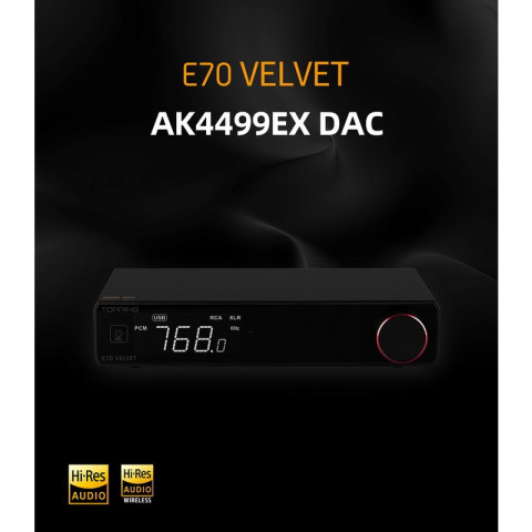 Topping E70 Velvet DAC คือ DAC ตั้งโต๊ะระดับเรือธงสำหรับสายฟังจริงที่ต้องการเสียงคมชัด รายละเอียดครบ และสัญญาณรบกวนต่ำเป็นพิเศษ มาพร้อมชิป DAC ระดับท็อป AKM AK4499EX (รุ่นล่าสุด) และชิปประมวลผล USB XMOS XU316 รองรับไฟล์ความละเอียดสูงแบบจัดเต็มทั้ง PCM 32Bit/768kHz และ DSD512 ให้โทนเสียงเนียน ละเอียด และเวทีเสียงแม่นยำ เหมาะทั้งกับชุดหูฟัง/แอมป์ตั้งโต๊ะ และระบบลำโพงในบ้าน