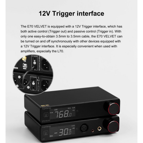 12V Trigger In/Out เปิด-ปิดพร้อมอุปกรณ์อื่นได้ง่าย เหมาะมากเมื่อใช้งานคู่กับแอมป์ตั้งโต๊ะ (เช่น Topping L70)