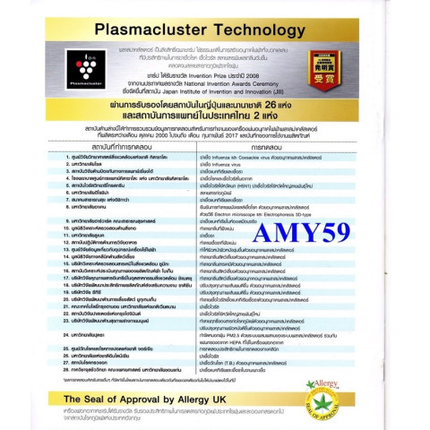 Plasmacluster ฟอกอากาศ ช่วยลดเชื้อแบคทีเรีย เชื้อรา ไวรัส สารก่อภูมิแพ้จากไรฝุ่น ลดกลิ่นไม่พึงประสงค์ และช่วยจัดการฝุ่น PM2.5