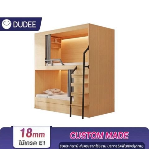 DUDEE ชุดเตียง 2 ชั้น รุ่น BKB1 พร้อมบันได + ตู้เก็บของ สไตล์ญี่ปุ่น (ติดตั้งฟรี)