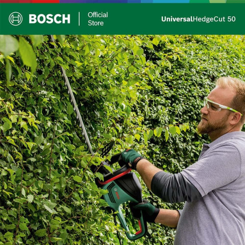 BOSCH เครื่องตัดแต่งพุ่มไม้ Universal Hedge Cut 50 ตัวช่วยตัดแต่งแนวพุ่มไม้ให้สวยเรียบคมได้อย่างมืออาชีพ ใช้งานคล่องตัว เหมาะทั้งสวนบ้านและงานดูแลพื้นที่รอบบ้าน ด้วยกำลังมอเตอร์ 480W ให้แรงตัดสม่ำเสมอ พร้อมใบมีดยาว 500 มม. ช่วยเก็บงานได้เร็วขึ้น ลดเวลาในการตัดแต่ง และให้แนวพุ่มดูเรียบร้อยทันทีหลังใช้งาน