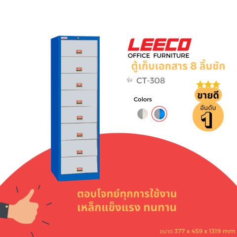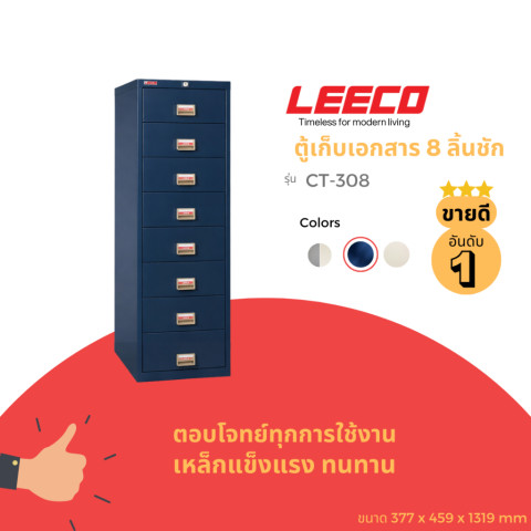 LEECO ลีโก้ ตู้เหล็กอเนกประสงค์ 8 ลิ้นชัก รุ่น CT-308 โทนสี Midnight Blue ตู้เก็บเอกสาร/ของใช้ที่ช่วยจัดระเบียบพื้นที่ให้เป็นสัดส่วน เหมาะทั้งสำนักงาน บ้าน หรือห้องทำงาน ด้วยลิ้นชักสูง 15 ซม. ใส่ของได้จุใจ หยิบใช้งานสะดวก และดูเป็นระเบียบมากขึ้นในทุกวัน