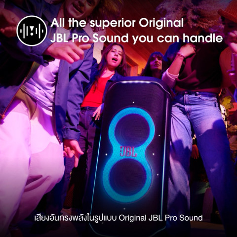 JBL PARTYBOX ULTIMATE ลำโพงปาร์ตี้ JBL 1100W (รับประกันศูนย์ไทย) ยกระดับทุกงานให้กลายเป็นเวทีคอนเสิร์ตส่วนตัว ด้วยพลังเสียงระดับจัดเต็มจาก Original JBL Pro Sound ให้เบสแน่น กระหึ่ม คมชัดทุกย่านเสียง พร้อมเอฟเฟกต์แสงไฟสุดอลังการที่เคลื่อนไหวไปตามจังหวะเพลง สร้างบรรยากาศปาร์ตี้ให้สนุกได้ทันที