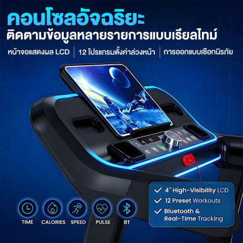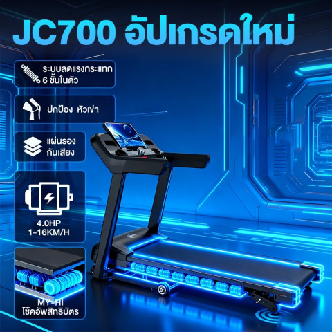 ลู่วิ่งไฟฟ้า JC700 Treadmill 5.0 แรงม้า ลู่วิ่งพับได้ ฟังก์ชันครบสำหรับออกกำลังกายที่บ้าน ปรับความเร็วได้ 12 ระดับ และปรับความชันได้ 3 ระดับ ให้คุณวิ่ง เดิน หรือคาร์ดิโอได้หลากหลายแบบ พร้อมจอ HD LED แสดงผลชัดเจน และรองรับการเชื่อมต่อ Bluetooth เพิ่มความสนุกระหว่างออกกำลังกาย
