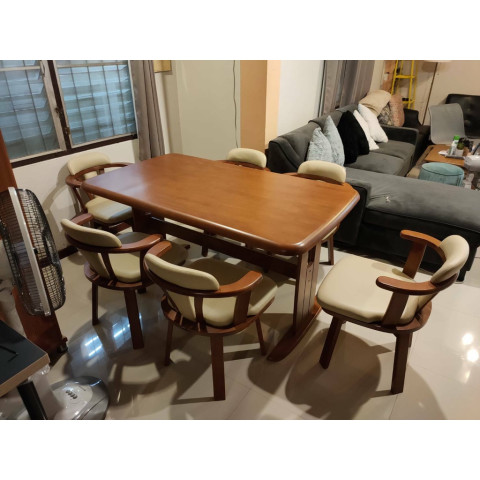 โต๊ะอาหารไม้ยางพารา ชุดอาหารญี่ปุ่น ดีไซน์เรียบอบอุ่น ใช้งานได้จริง เหมาะทั้งมื้อพิเศษของครอบครัวและการใช้งานทุกวัน มาพร้อมตัวเลือกชุดอาหารพร้อม เก้าอี้หมุนได้ นั่ง-ลุกสะดวก ไม่ต้องลากเก้าอี้ให้เกิดรอยพื้น จัดวางในบ้าน คอนโด หรือร้านอาหารสไตล์ญี่ปุ่นก็ลงตัว
