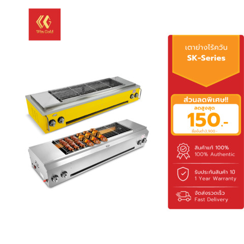 Gmax เตาปิ้งย่างไร้ควัน เตาย่างแก๊ส รุ่น SK-Series หัวอินฟราเรด (รับประกัน 1 ปี) เตาย่างสายจริงสำหรับร้านอาหาร/งานอีเวนต์/ปาร์ตี้ที่บ้าน ให้ความร้อนสูงแบบ “ไม่มีเปลวไฟ” ช่วยลดควัน ร้อนทั่วถึงด้วยพัดลมกระจายความร้อน ทำให้อาหารสุกไว ประหยัดเวลา และประหยัดแก๊สได้มากถึง 40% ใช้งานกับแก๊ส LPG และหัวปรับแรงดันต่ำเท่านั้น