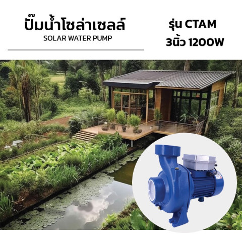 Solar pump ปั้มน้ำหอยโข่งโซล่าเซลล์ DC 1200W 108V (มอเตอร์บัสเลสแท้ ไร้แปรงถ่าน) รุ่น CTAM-3-108V ให้แรงส่งน้ำดี ไหลแรง เหมาะสำหรับงานสูบน้ำเพื่อการเกษตร ระบบน้ำในสวน บ่อปลา งานระบายน้ำ หรือจ่ายน้ำไปยังถังพัก โดยรองรับการใช้งานร่วมกับแผงโซล่าเซลล์ได้โดยตรง ประหยัดพลังงาน ลดค่าไฟ ใช้งานได้คุ้มค่า