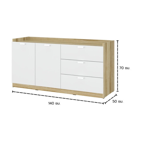 ฟังก์ชันจัดเก็บครบจบในตัว มีทั้งหน้าบานเปิดและลิ้นชัก ช่วยแยกหมวดหมู่ของใช้ได้ง่าย ด้านในตู้มีชั้นแบ่งเป็น 3 ช่อง จุของได้เยอะ ส่วนลิ้นชัก 3 ลิ้นชัก เหมาะสำหรับเก็บของชิ้นเล็กให้หยิบใช้ง่าย และที่ท็อปตู้ยังออกแบบให้มี ขอบกันของตก เพิ่มความมั่นใจขณะวางของตกแต่งหรือของใช้ประจำวัน