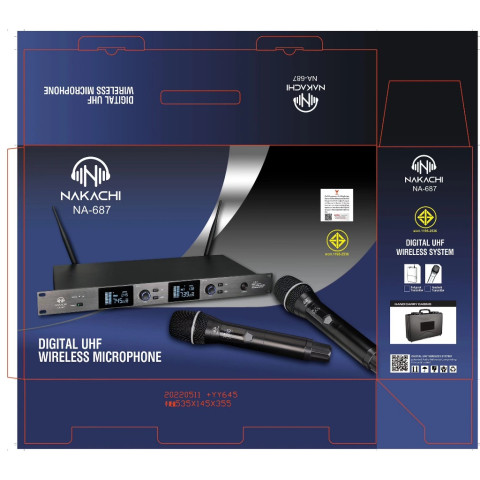 NAKACHI รุ่น NA-687 ไมค์ลอยคู่ UHF ไมโครโฟนไร้สายไมค์มือถือ เสียงชัด รับสัญญาณไกล ในราคา 5,590.00 บาท เหมาะสำหรับงานพูด งานร้อง คาราโอเกะ งานอีเวนต์ หรือใช้งานร่วมกับชุดเครื่องเสียงทั้งในบ้านและกลางแจ้ง ให้เสียงคมชัด สัญญาณแรง รับ-ส่งได้เสถียร พร้อมภาครับมีจอ LCD ช่วยให้ดูสถานะการทำงานได้ง่าย