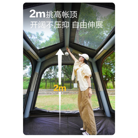 ทรงบ้านโปร่ง น่าอยู่ ขนาดกางออก 280 x 250 x 200 ซม. ยืน/นั่งใช้งานได้สะดวก จัดพื้นที่นอนได้เป็นสัดส่วน