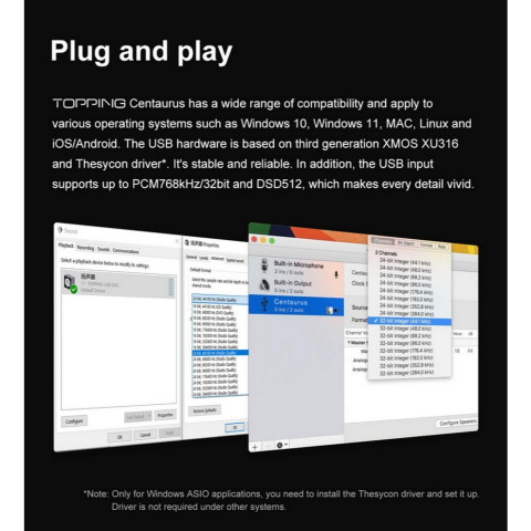 ใช้ XMOS XU316 รุ่นที่ 3 และไดรเวอร์ Thesycon (สำหรับ Windows/ASIO) รองรับ PCM 768kHz/32bit และ DSD512 เก็บทุกรายละเอียดของเพลงได้อย่างครบถ้วนใช้งานเป็นพรีแอมป์ได้ + รีโมตคอนโทรล