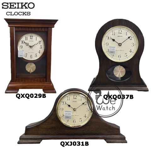 SEIKO นาฬิกาตั้งโต๊ะ รุ่น QXQ232S / QXQ232P / QXQ232G / QXJ031B / QXQ029B / QXQ037B ดีไซน์คลาสสิกสไตล์วินเทจ ตัวเรือนไม้โทนสีน้ำตาล/ทอง เหมาะสำหรับวางบนโต๊ะทำงาน ตั้งโชว์ในบ้านหรือออฟฟิศ และมอบเป็นของขวัญได้อย่างมีระดับ ในแบบที่ “สวย ดูแพง และใช้งานได้จริง”