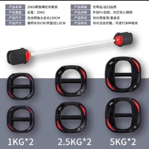 แผ่นน้ำหนักยาง: 1 กก. x2, 2.5 กก. x2, 5 กก. x2