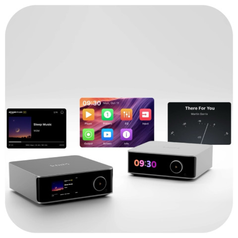 แสดงปกอัลบั้มขนาดใหญ่, มิเตอร์ VU, สถานะการเล่น และการแสดงผลที่ปรับแต่งได้ ช่วยให้คุณสลับอินพุต/เอาต์พุตและตั้งค่าต่างๆ ได้อย่างเป็นธรรมชาติ ทั้งจากหน้าเครื่องและในแอพ