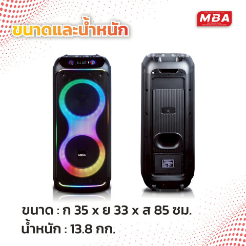 MBA AUDIO THAILAND ลำโพงบลูทูธล้อลาก รุ่น MB-210B ลำโพงสายปาร์ตี้ที่พร้อมพาความมันส์ไปได้ทุกที่ด้วยดีไซน์ตู้ล้อลาก เคลื่อนย้ายสะดวก เสียงดังฟังชัด เบสแน่นหนักสะใจ เหมาะทั้งงานสังสรรค์ ร้องคาราโอเกะ ไลฟ์สด งานอีเวนต์ หรือใช้เป็นชุดเครื่องเสียงอเนกประสงค์ในบ้านและร้านค้า มาพร้อม ไมค์ลอยคู่ UHF ร้องได้พร้อมกัน 2 คน สนุกได้ทันทีตั้งแต่แกะกล่อง