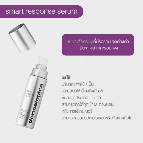Dermalogica Smart Response Serum 30ml เดอร์มาลอจิกา สมาร์ทเรสปอนส์เซรั่ม เซรั่มอัจฉริยะที่ออกแบบมาเพื่อ “ตอบทุกความต้องการของผิว” ในขวดเดียว ด้วยเทคโนโลยี Smart Response เสมือนมี AI ช่วยตรวจจับและวิเคราะห์สภาพผิวแบบรายจุด แล้วทำงานเพื่อแก้ปัญหาที่ผิวกำลังเผชิญ ไม่ว่าจะเป็นริ้วรอย จุดด่างดำ ผิวขาดน้ำ หรือรอยแดง ให้ผิวดูเรียบเนียน กระจ่างใส ชุ่มชื้น และแข็งแรงขึ้นในทุกวัน