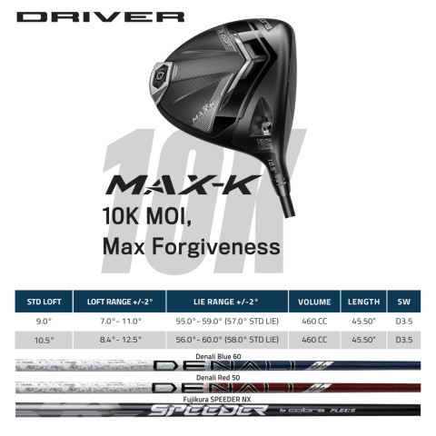 SS25 DS-ADAPT MAX-K Driver ไดรเวอร์ตัวท็อปที่ออกแบบมาเพื่อความ “ให้อภัย” สูงสุด เหมาะสำหรับผู้เล่นที่ต้องการตีได้ตรงขึ้น ง่ายขึ้น และได้ระยะอย่างมั่นใจ แม้พลาดโดนไม่เต็มหน้าไม้ ด้วยค่า M.O.I. รวมสูงถึง 10,000 ช่วยเพิ่มความเสถียร ลดการบิดหัวไม้ และทำให้วิถีลูกสม่ำเสมอขึ้นในทุกช็อต