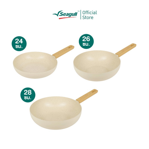 Seagull กระทะนอนสติ๊ก ไอวอรี่ เพิร์ล อินดักชั่น โทนสี Ivory Pearl อบอุ่นละมุน เข้ากับครัวทุกสไตล์ ดีไซน์สวยด้วยการพ่นสีทับแผ่นอัดฐาน มองมุมไหนก็โดดเด่น พร้อมเคลือบผิวแบบ Multi-Layer Coating ช่วยให้ลื่น ไม่ติดกระทะ ทำอาหารได้คล่อง ทำความสะอาดง่าย และทนทานด้วยสารเคลือบ Extreme ได้มาตรฐาน US FDA เคลือบถึงขอบ ลดปัญหาคราบอาหารติดขอบกระทะ