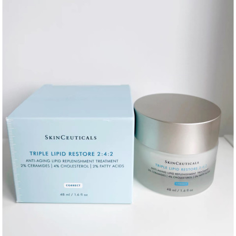 Skin Ceuticals Triple Lipid Restore 2:4:2 Corrective Cream 48ml ครีมบำรุงผิวระดับพรีเมียมเพื่อการดูแลริ้วรอยและฟื้นบำรุงผิวที่เริ่มมีอายุอย่างล้ำลึก ด้วยสูตรไขมันเข้มข้นในอัตราส่วนเฉพาะ 2:4:2 ที่ช่วยเสริมเกราะป้องกันผิวชั้นนอก พร้อมสนับสนุนการซ่อมแซมตัวเองตามธรรมชาติของผิว เพื่อผิวที่ดูเรียบเนียน แน่นกระชับ และเปล่งปลั่งขึ้นอย่างเห็นได้ชัด