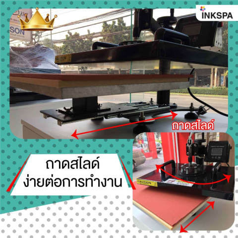 เครื่องสกรีน/เครื่องรีดร้อน แบบสไลด์ by inkspa ตัวช่วยงานสกรีนที่ “ครบ จบ เร็ว และปลอดภัย” เหมาะทั้งมือใหม่และร้านที่ต้องการเพิ่มกำลังการผลิต รองรับงานยอดนิยมอย่าง DTF, DTF FLEX, SUBLIMATION, งานบล็อคสกรีน และ DTG ด้วยระบบควบคุมดิจิตอลที่แม่นยำ พร้อมถาดสไลด์ทำงานไว ลดโอกาสเลอะด้านหลัง และช่วยให้มือไม่สัมผัสหน้าเตาที่ร้อน