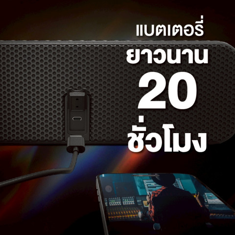 แบตเตอรี่ Lithium Ion ใช้งานต่อเนื่องสูงสุด 20 ชั่วโมง (ขึ้นกับระดับเสียง) และชาร์จกลับได้รวดเร็วเพียง 2 ชั่วโมงBluetooth 5.3 เสถียร หน่วงต่ำ จำอุปกรณ์ได้
