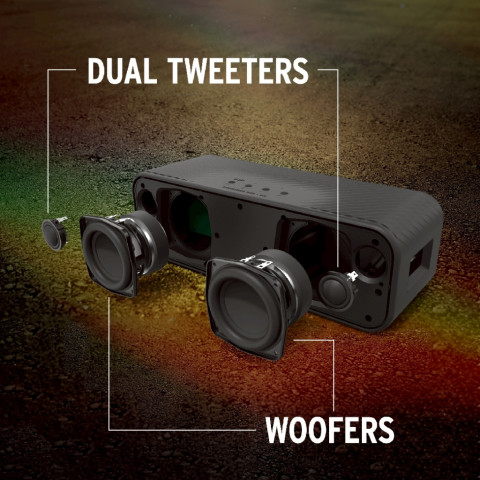 จัดเต็มด้วย วูฟเฟอร์ 3 นิ้ว 2 ดอก และ ทวีตเตอร์ 1 นิ้ว 2 ดอก เสริม Passive Radiators 3 นิ้ว 4 ดอก (Force-Cancelling) ช่วยลดความเพี้ยนแม้เปิดดัง ให้เสียงแน่น คม และมีมิติ เหมาะทั้งปาร์ตี้และฟังจริงจังเบสลึกแบบไม่บวม รายละเอียดชัดทุกย่าน