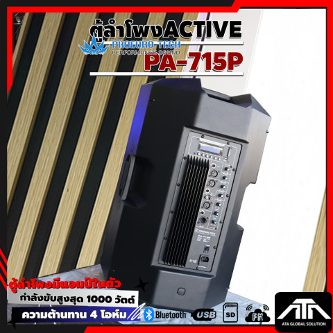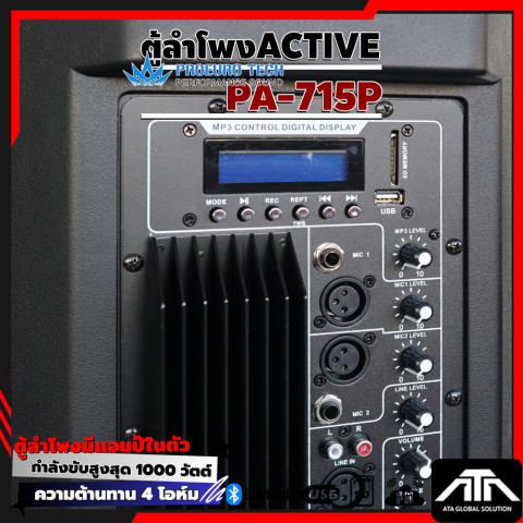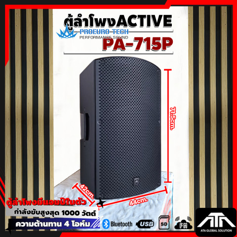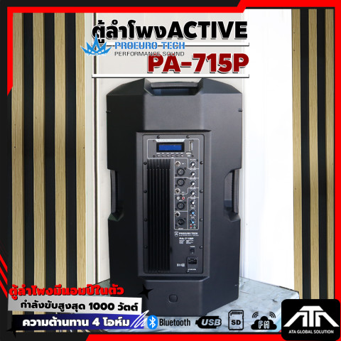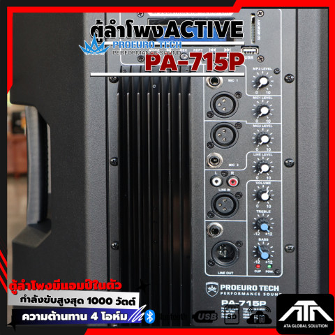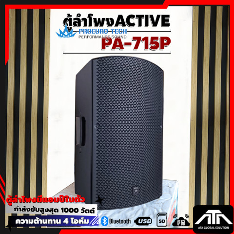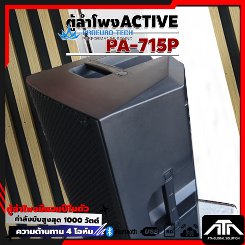 PROEUROTECH PA-715P ตู้ลำโพง Active ขนาด 15 นิ้ว ที่ออกแบบมาเพื่อ “พลังเสียงเต็มอิ่ม คมชัด และครอบคลุมพื้นที่” เหมาะทั้งงานอีเวนต์ งานเลี้ยง ร้านอาหาร ห้องซ้อม ไปจนถึงการใช้งานแบบพกพาในโอกาสต่าง ๆ ด้วยกำลังขับสูงสุด 1000W MAX พร้อมเครื่องเล่น MP3 และการเชื่อมต่อ Bluetooth ให้คุณเปิดเพลงได้สะดวกทันที ไม่ต้องต่ออุปกรณ์ให้ยุ่งยาก