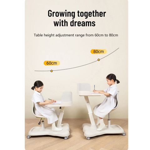 โต๊ะและเก้าอี้สามารถปรับให้เหมาะกับสรีระของเด็กได้จริง ตั้งแต่ช่วงเริ่มต้นจนโตขึ้น ลดปัญหาท่านั่งไม่ถูกต้องด้วยเบาะรองรับกระดูกสันหลังตามหลักสรีระศาสตร์รูปตัว S และที่วางเท้าแบบเรียบที่ช่วยจัดท่านั่งให้ตรงมากขึ้น เหมาะสำหรับบ้านที่ต้องการ “มุมเรียน” ที่ใช้งานได้ยาวนานและย้ายตำแหน่งได้สะดวก