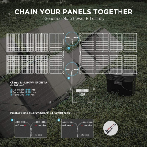 รองรับพอร์ต MC4 ใช้งานร่วมกับแบตเตอรี่สำรองได้หลากหลาย และเข้ากันได้กับ EcoFlow RIVER / DELTA Series