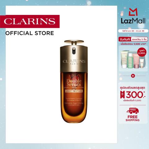 [NEW] Clarins Double Serum Light Texture 50 ml คลาแรงส์ ดับเบิ้ล เซรั่ม เนื้อบางเบา เพื่อผิวแลดูอ่อนเยาว์ กระจ่างใสขึ้น มอบการดูแลผิวแบบแอนติเอจจิ้งพร้อม “Bare Skin Effect” สัมผัสสบายผิว ซึมไว ไม่เหนอะหนะ เหมาะกับทุกสภาพผิว แม้ผิวบอบบางแพ้ง่าย และยิ่งเหมาะเป็นพิเศษสำหรับผิวผสมถึงผิวมัน