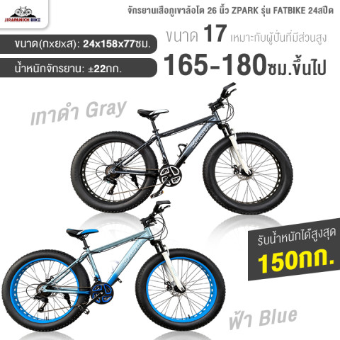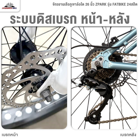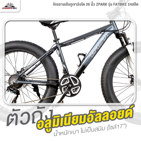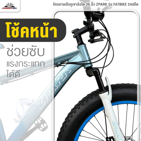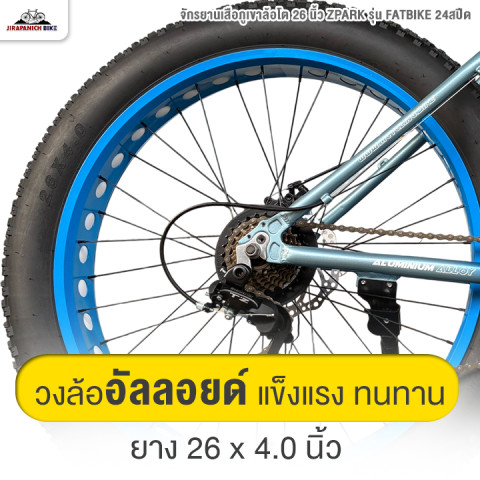 จักรยานเสือภูเขาล้อโต 26 นิ้ว ZPARK รุ่น FATBIKE 24สปีด ดีไซน์เท่ ขี่สนุกทุกเส้นทาง ด้วยยางหน้ากว้าง 26x4.0” เกาะถนน/ทางลูกรังได้มั่นใจ โครงอลูมิเนียมอัลลอยด์น้ำหนักเบา ไม่เป็นสนิม พร้อมดิสก์เบรกหน้า-หลังและโช้คหน้า ช่วยซับแรงกระแทกได้ดี เหมาะทั้งปั่นออกกำลังกาย เดินทางในเมือง หรือสายลุยเบาๆ