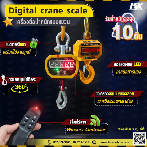 เพิ่มความแม่นยำและความปลอดภัยในการชั่งน้ำหนักงานยกของหนักด้วย เครื่องชั่งน้ำหนักแบบแขวน Digital Crane Scale รุ่นรับน้ำหนัก 1 / 3 / 5 / 10 ตัน สินค้านำเข้าจากประเทศจีน มาตรฐานส่งออกใช้งานได้หลากหลายทั้งโรงงาน โกดัง งานยกเหล็ก งานขนส่ง และไซต์งานที่ต้องการความคล่องตัวในการชั่งแบบแขวน