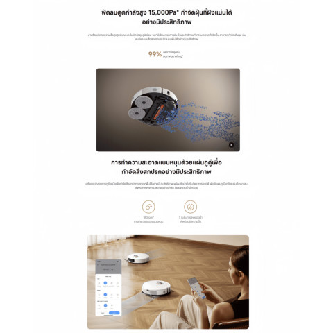 แรงดูดทรงพลัง 15,000Pa เหมาะทั้งพื้นกระเบื้อง ไม้ ลามิเนต และพรม