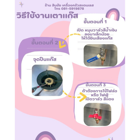 การใช้งานแก๊ส: ใช้กับ หัวปรับแก๊สแรงดันสูงเท่านั้น