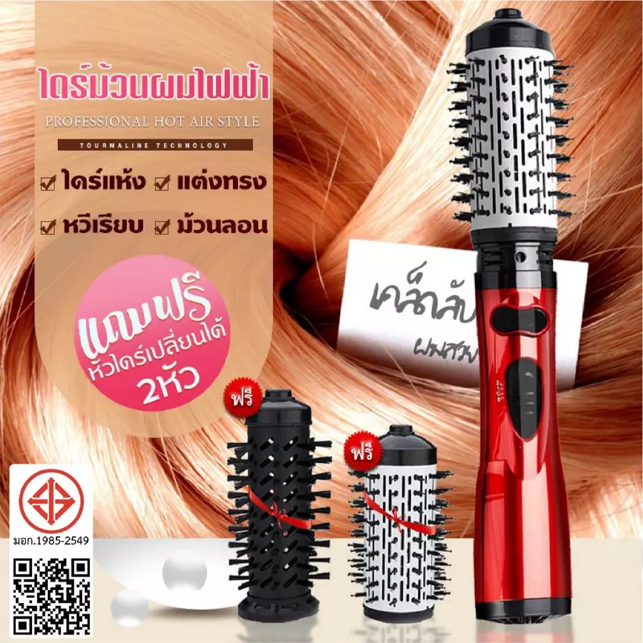 ที่ม้วนและไดร์ผมคุณอย่างอัตโนมัติ ให้ผมของคุณเรียบสลวย มีวอลลุ่มดูธรรมชาติ เงางามเรียงสวยทุกเส้น ทำง่ายได้ด้วยตัวคุณเอง มาพร้อม 2 หัวแปรงขนาด 50mm.และ 38mm เคลือบเซรามิค เลือกความร้อนได้ 2 ระดับ ไม่ทำให้ผมของคุณแห้งเสีย แตกปลาย มาพร้อมระบบเป่าลมเย็น หัวแปรงหมุนปรับได้ 2 ระดับ กำลังไฟ 900 วัตต์ หัวแปรงหมุนได้ทุกทิศทาง 360 องศา มีความปลอดภัยสูงระหว่างการใช้งาน