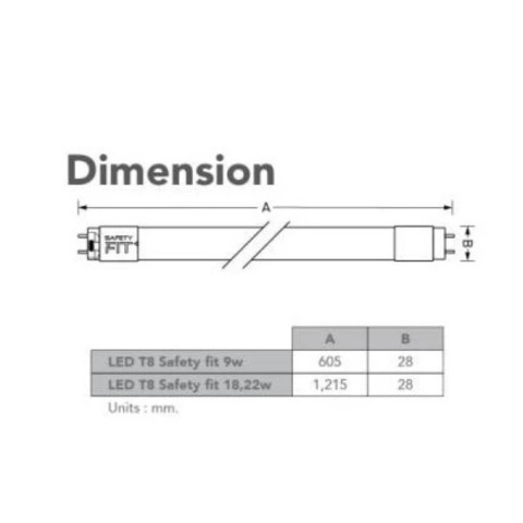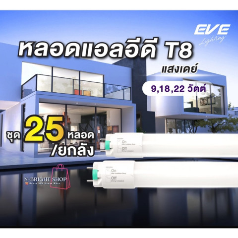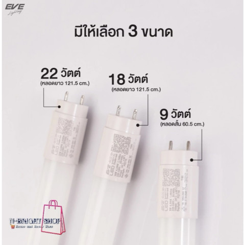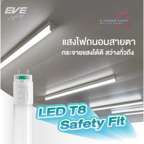 EVE ของแท้ ยกลัง 25 หลอด | หลอด LED T8 รุ่น Safety Fit (Double-End) แสงขาว Daylight 6500K ราคา 3,087.50 บาท