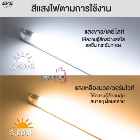 อัปเกรดความสว่างให้พื้นที่ใช้งานด้วยหลอดไฟคุณภาพจาก EVE แบบ ไฟเข้าสองทาง (Double-End) ติดตั้งง่าย ใช้แทนหลอดฟลูออเรสเซนต์รุ่นเก่าได้สะดวก เหมาะทั้งบ้านพักอาศัย ออฟฟิศ และคอนโด ให้แสงขาวคมชัด 6500K สว่างเต็มประสิทธิภาพ พร้อมความปลอดภัยมากขึ้นด้วยสวิตช์ปิด-เปิดที่ขั้วหลอด