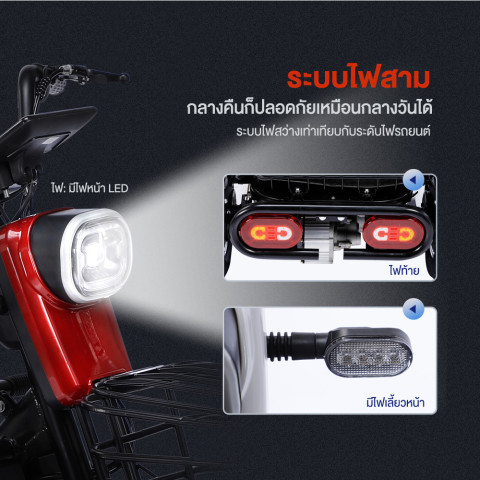 ไฟหน้า LED + ไฟเลี้ยวหน้า + ไฟท้าย เพิ่มความปลอดภัยตอนกลางคืน